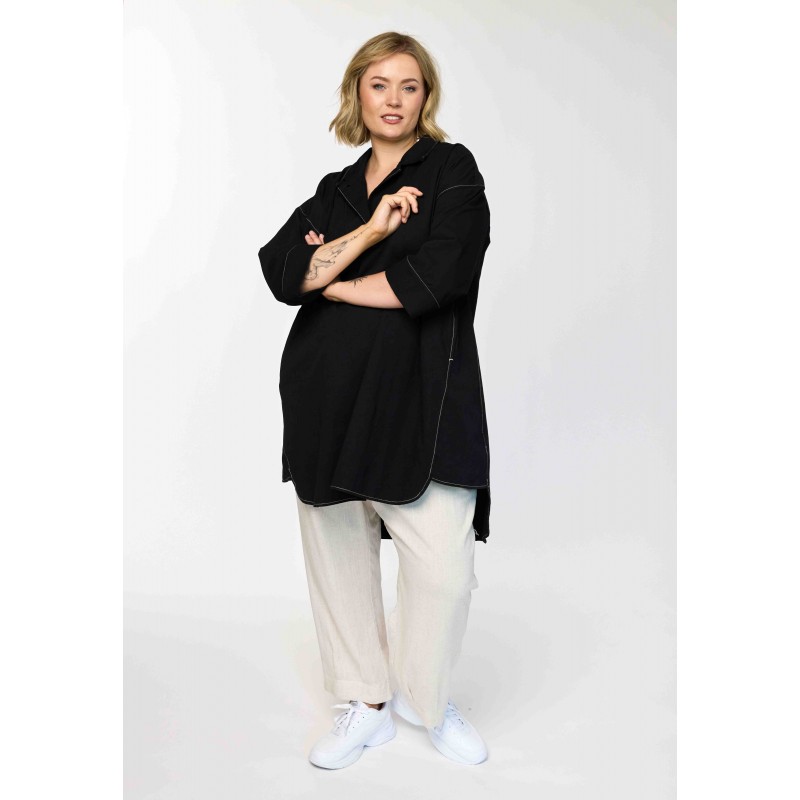 GJoa er et par lette bukser i 70% viskose og 30% hør, designet med et afslappet snit og et naturligt fald. Modellen har lige ben og en behagelig pasform, som gør bukserne velegnede til både hverdagsbrug og mere afslappede anledninger.