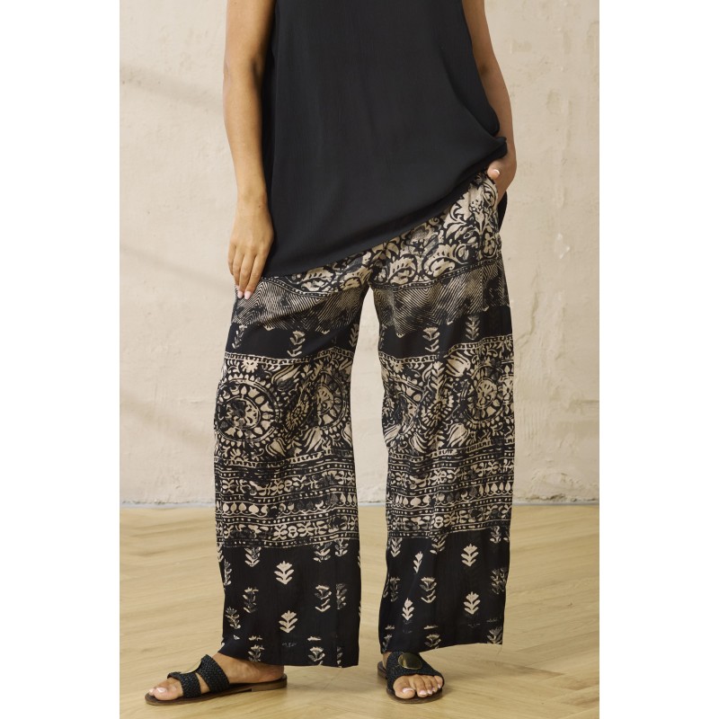 Printet bukser med vide ben. Ember buksen er med elastik i livet og lommer i siderne. Lavet i en dejlig behagelig viskose kvalitet.