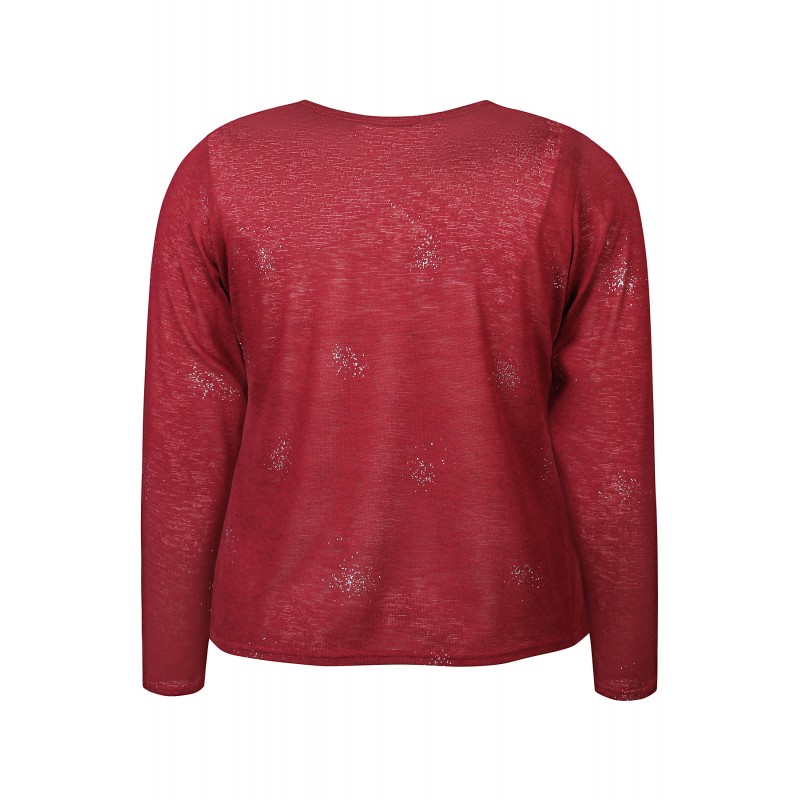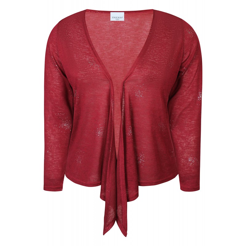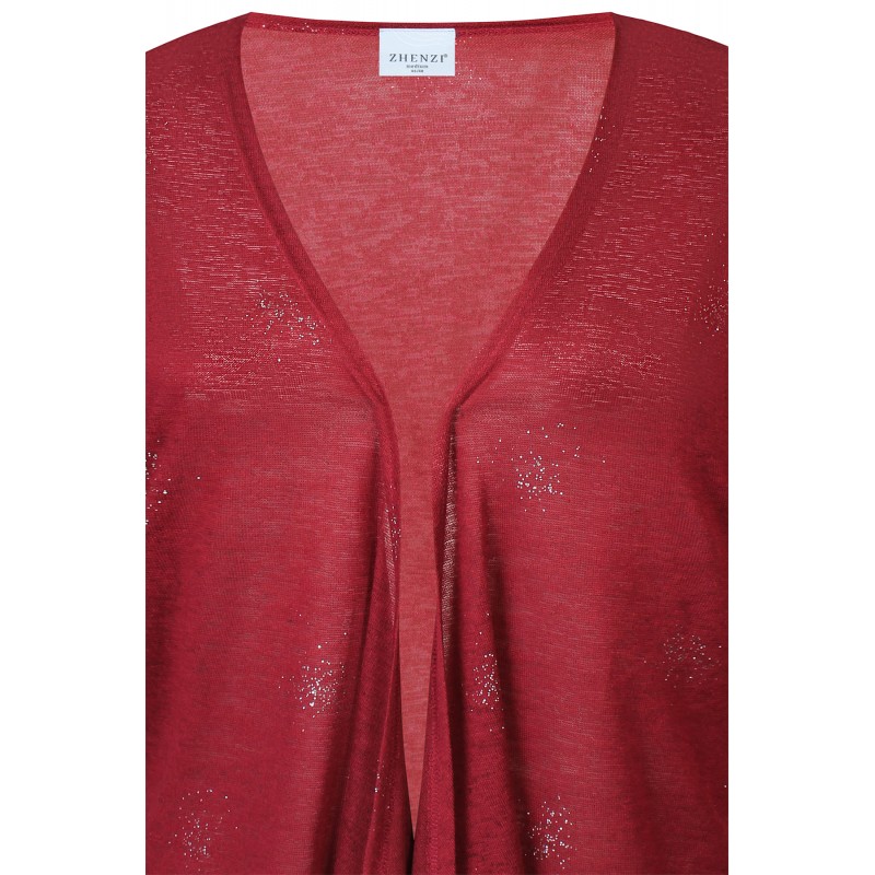 Zhenzi Zh-Agar 1152 Cardigan - Rød cardigan med sølv mønster 201152 Burgundy Red fra Zhenzi