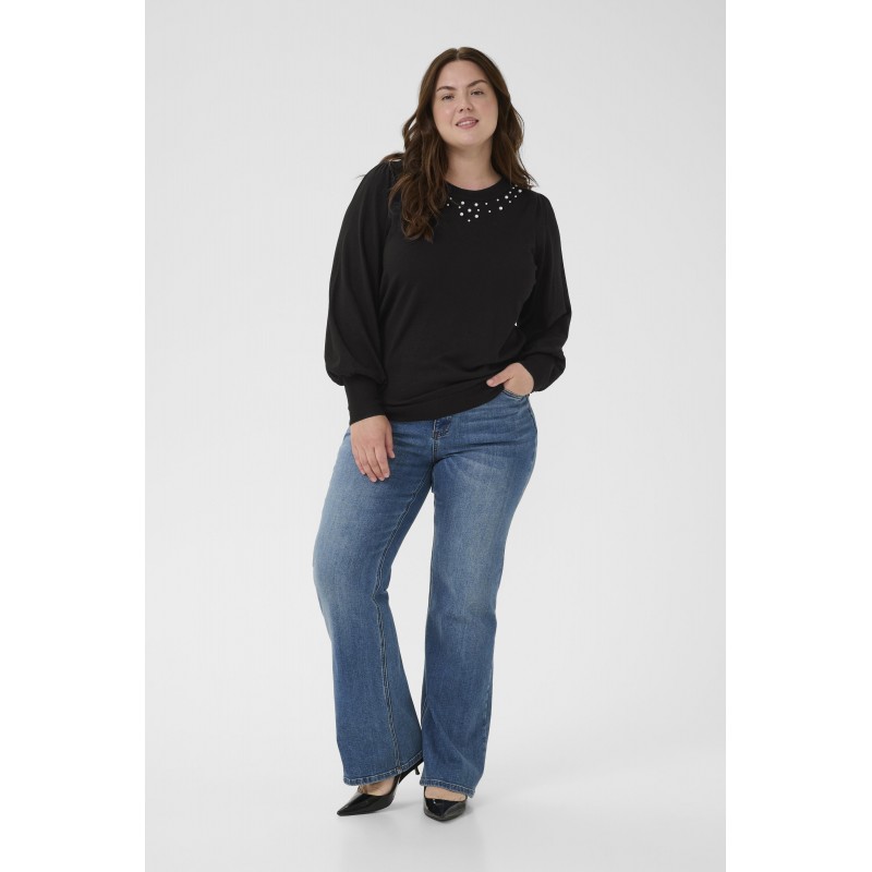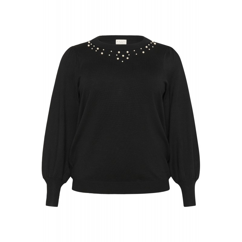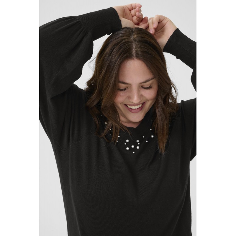 Kaffe Curve KCrahina Pullover - Sort strik med perler 10583802 Black Deep