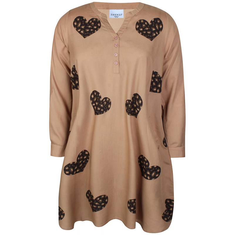 Super skøn kjole fra Zhenzi i en lækker viskose kvalitet med hjerter. Zh-Sofia kjolen har stolpelukning, lange ærmer og lommer.