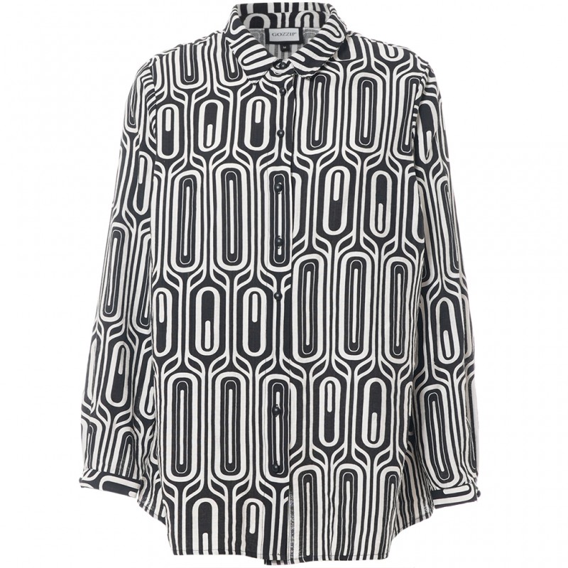 Gozzip GKarina Shirt - Sort/hvid printet skjorte G256001 Black/Offwhite