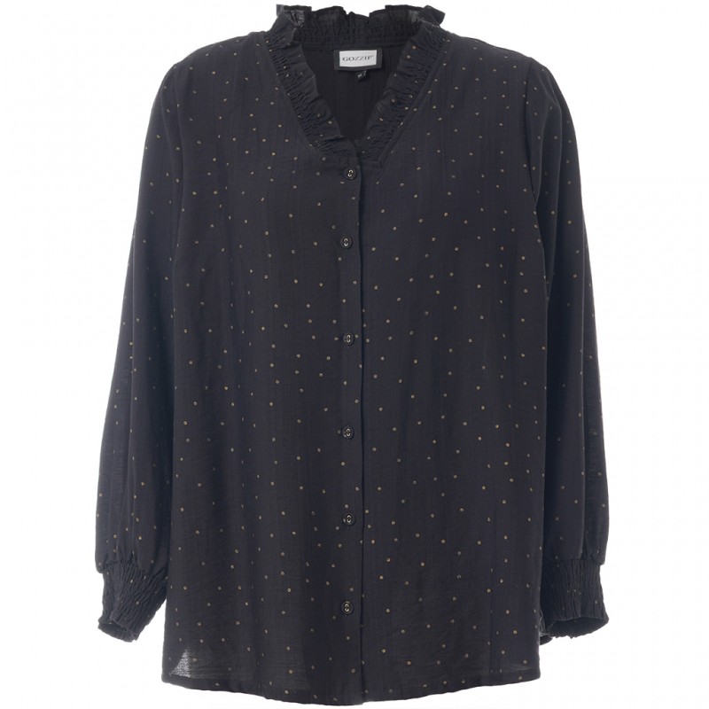 Gozzip GMarianne Blouse - Sort skjorte med guld prikker G256062 Black/Gold