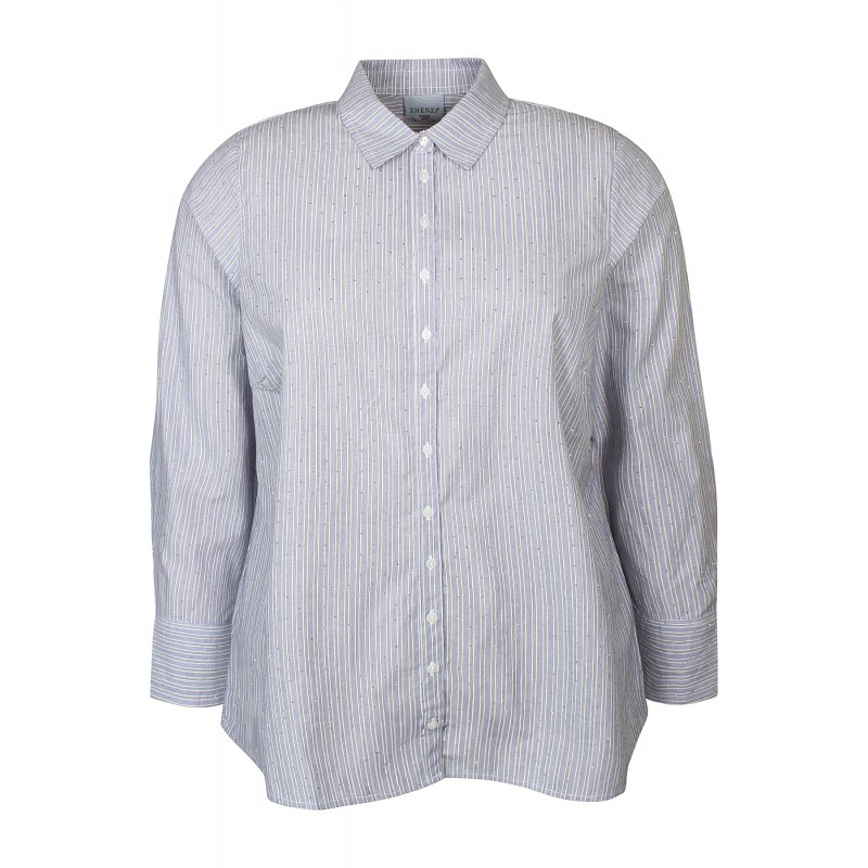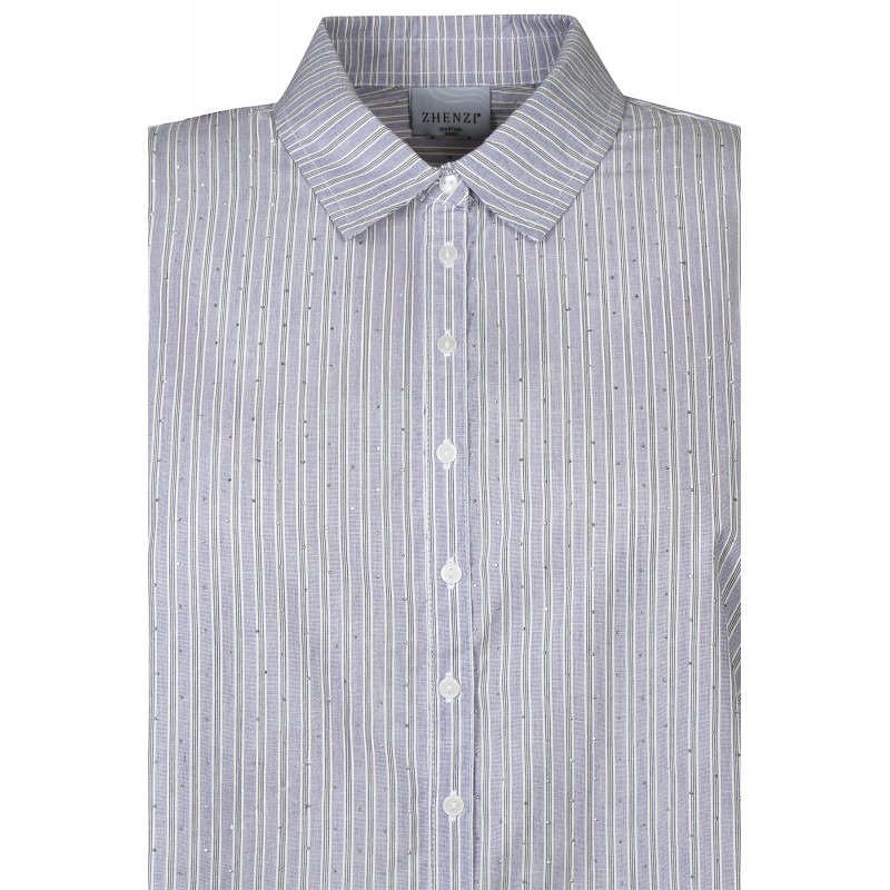 Lækker stribet skjorte fra Zhenzi med små similisten. Zh-Sofi skjorten har skjortekrave, er gennemknappet og har brede manchetter.