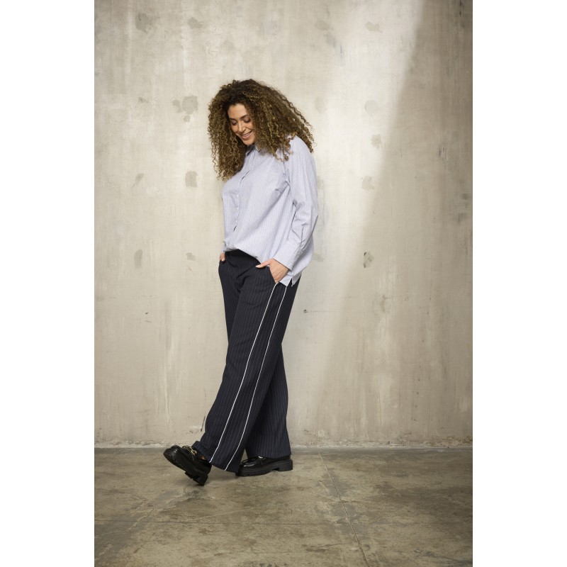 Zhenzi Zh-Sofi 1064-Blouse L/S - Blå stribet skjorte med sten 201064 Navy fra Zhenzi