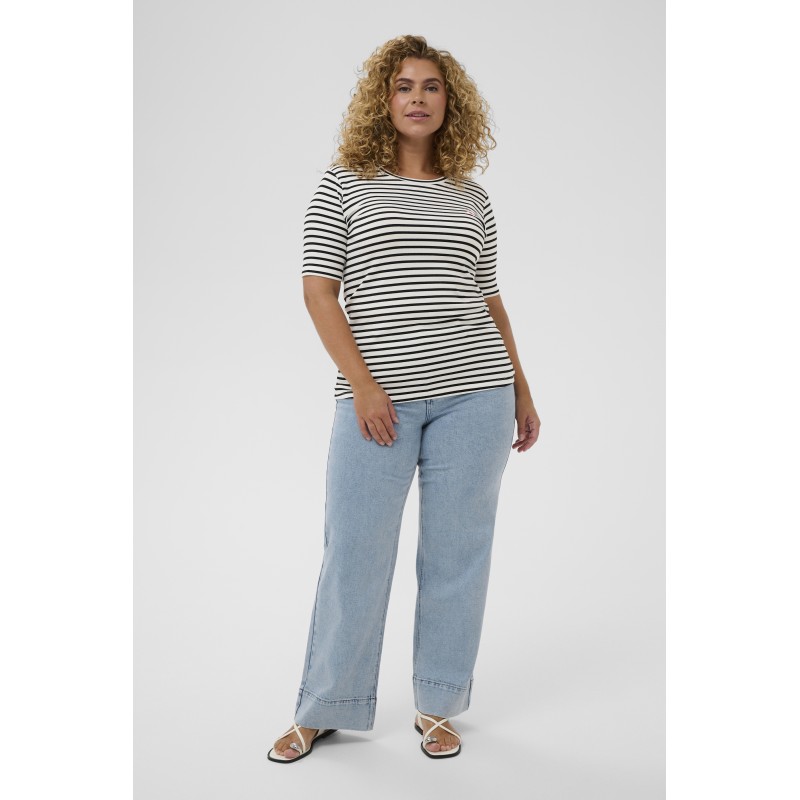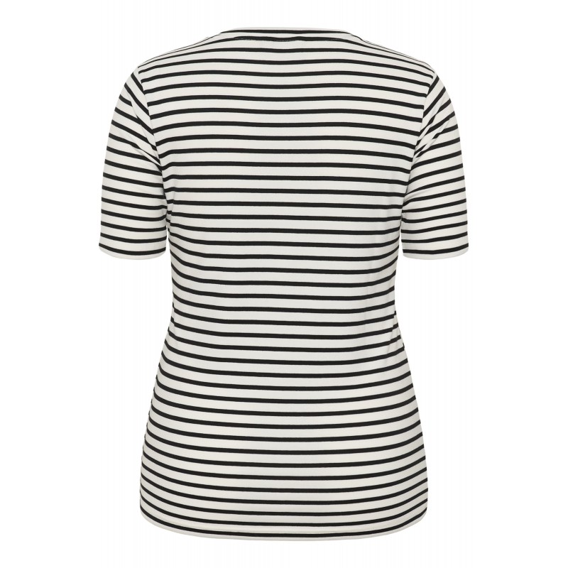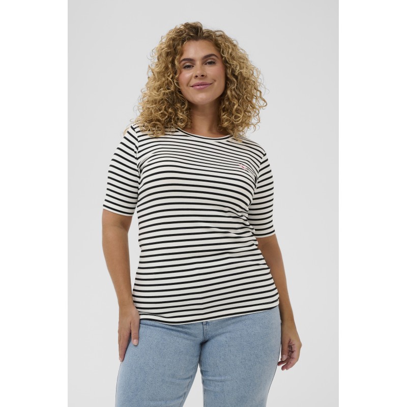Kaffe Curve KClia Flower T-shirt - Stribet t-shirt 10584175 Chalk/Deep Black fra Kaffe Curve