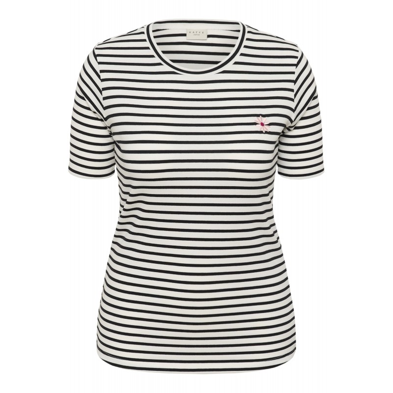 Kaffe Curve KClia Flower T-shirt - Stribet t-shirt 10584175 Chalk/Deep Black