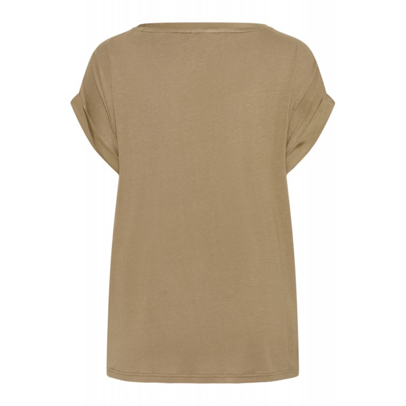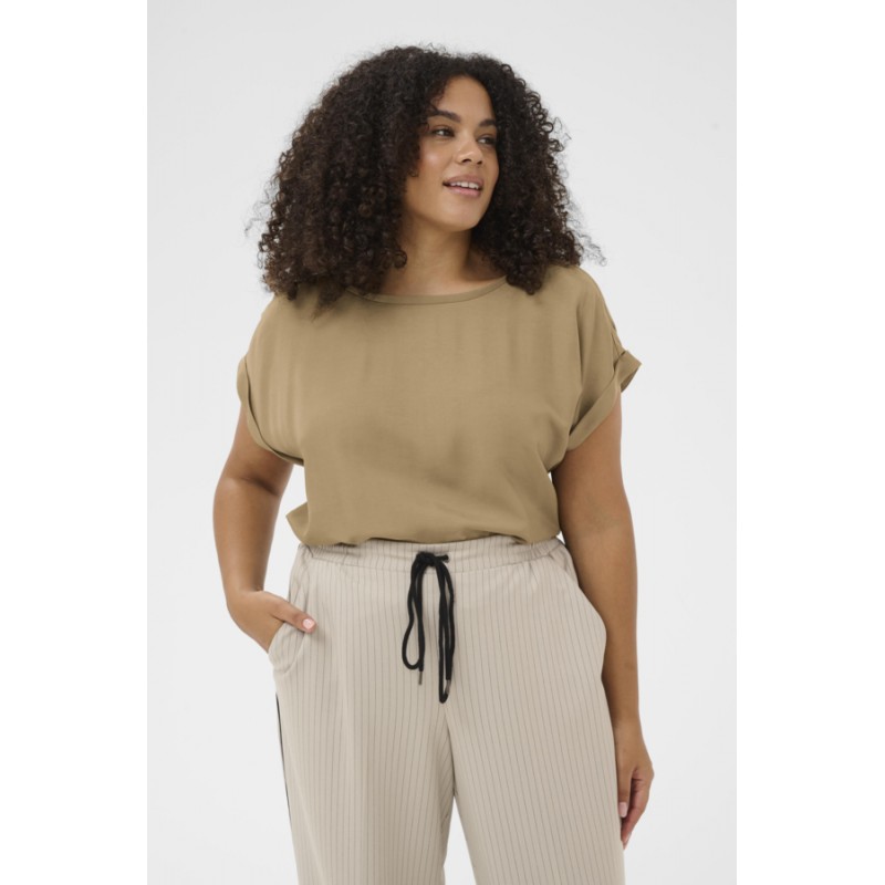 Kaffe Curve KCmilia Wing SL Blouse - Sandfarvet t-shirt 10583812 Petrified Oak