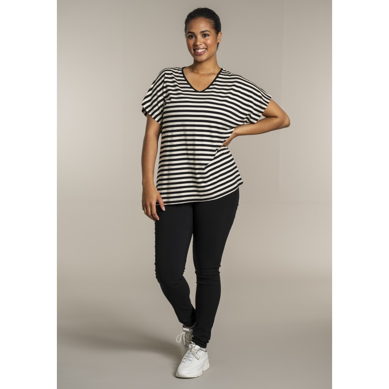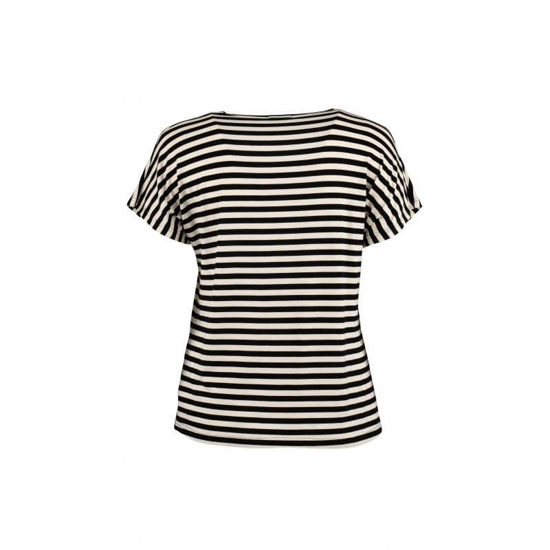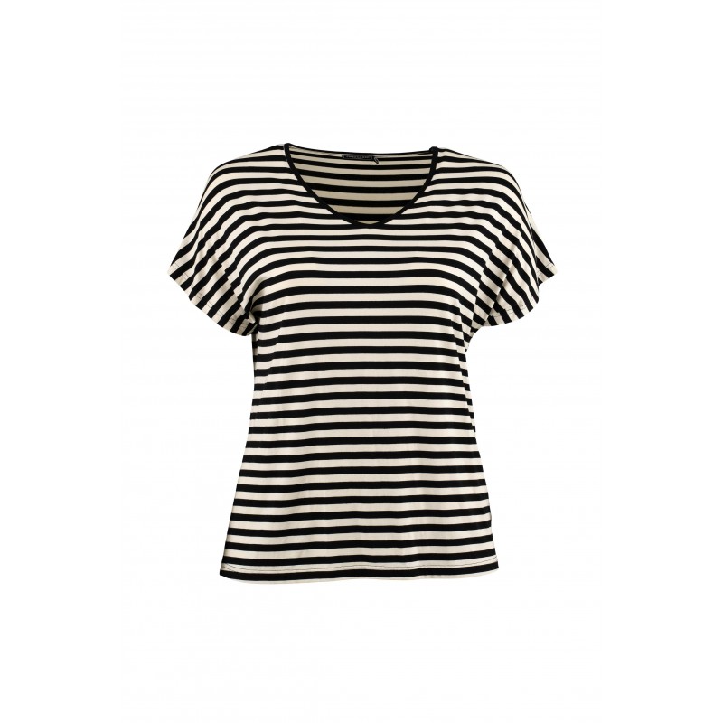Enkelt og klassisk stribet t-shirt med løs pasform. T-shirten har korte ærmer og et blød v-hals. Den bløde viskose føles skøn og falder smukt på kroppen.