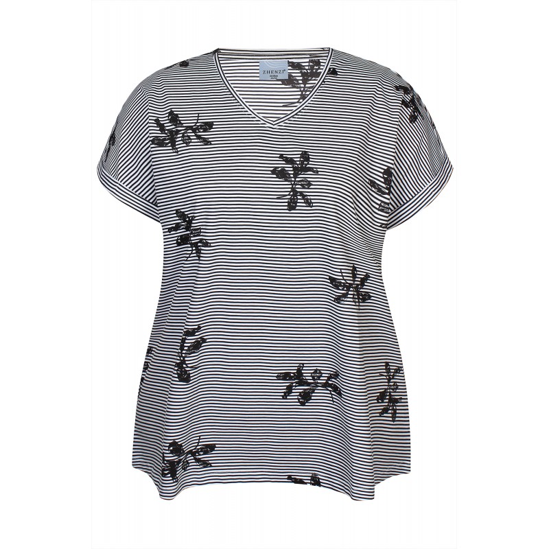 Zhenzi Zh-Alberta 1254-T-shirt S/S - Sort stribet t-shirt 201254 Black