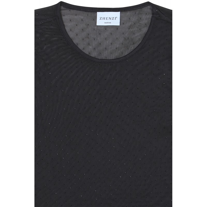 Zh-Tiri t-shirt er en sort mesh bluse fra Zhenzi med små sorte simili sten.