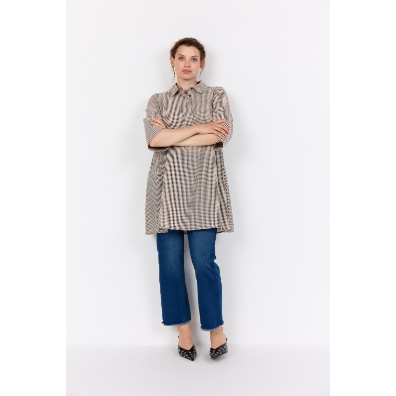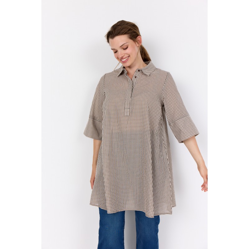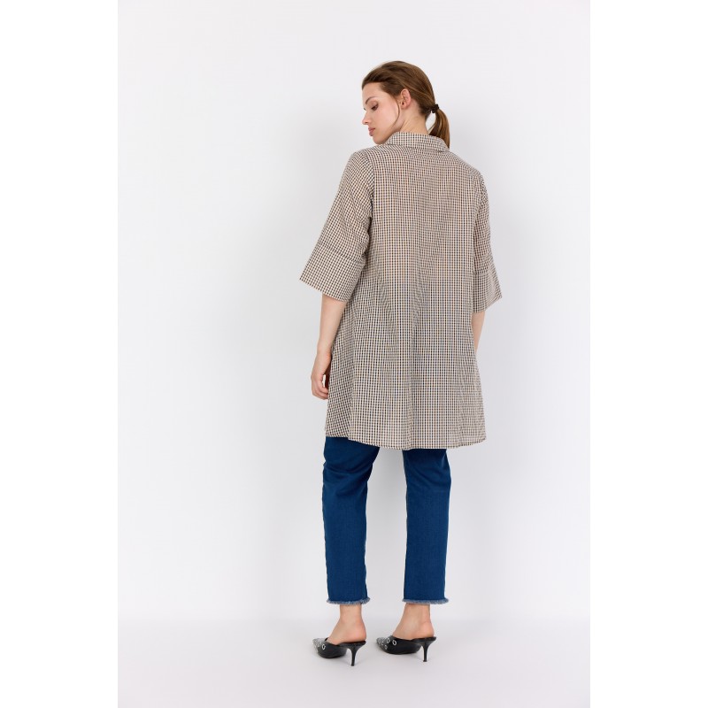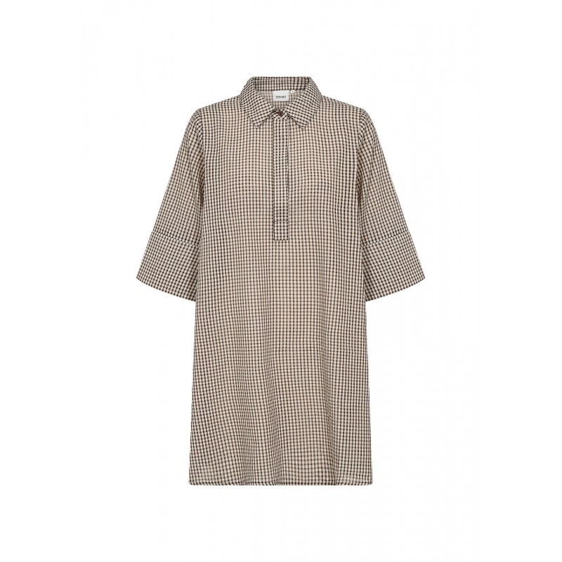 WA-SAINA 3 er en klassisk tunika lavet af 100 % økologisk bomuld. Den har en klassisk krave med diskrete knapper og et blidt ternet mønster, der giver et strejf af elegance. Sæt den sammen med jeans eller leggings for et cool, afslappet look.