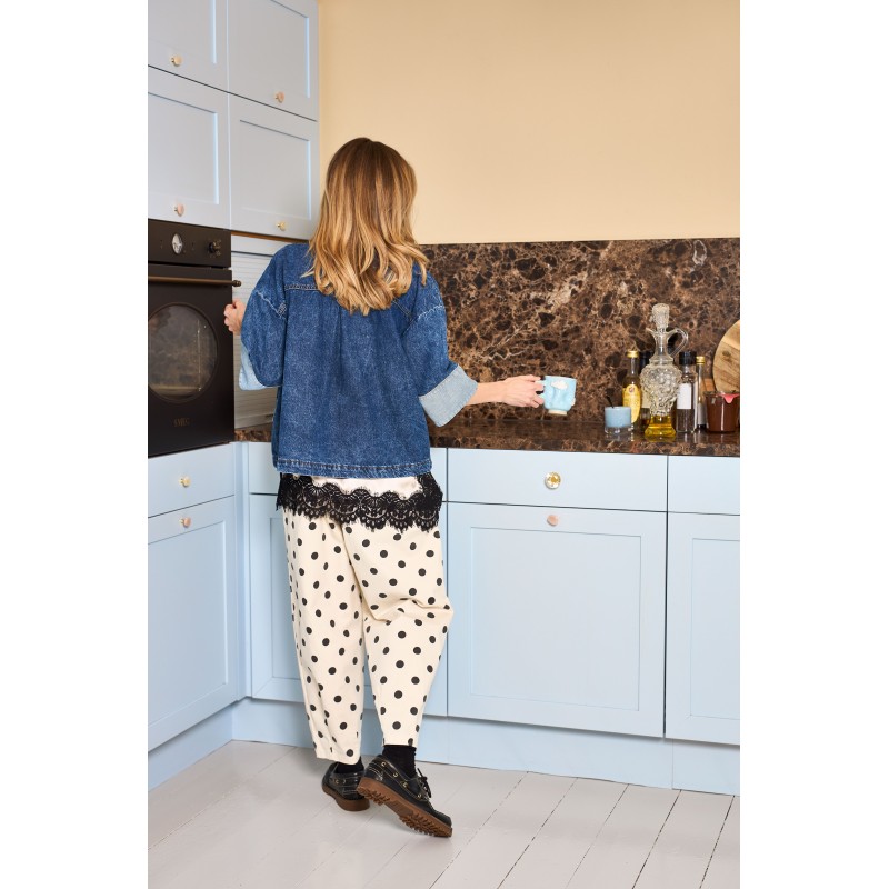Black Colour BCELLIE BARREL PANT - Prikket barrel buks 41092 White Dot fra Black Colour