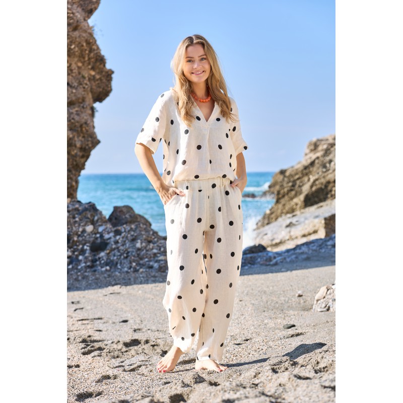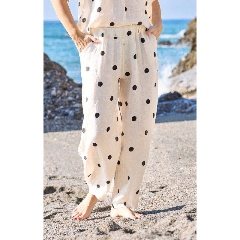 Black Colour BCMELINA BARREL LINEN PANT - Prikket hørbuks 41113 Dot