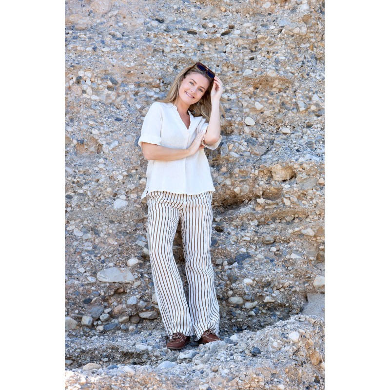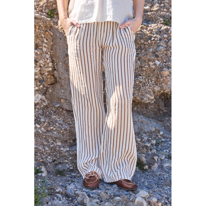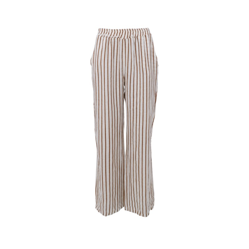 Black Colour BCMELINA WIDE LINEN PANT - Brun stribet hørbuks 41114 Camel Stripe fra Black Colour