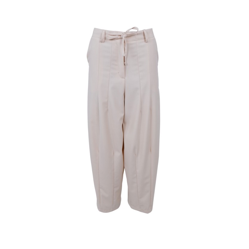 Elegante bukser med et afslappet og sofistikeret udtryk. Modellen har mellem høj talje med linning, bæltestropper og bindebånd, som giver mulighed for at tilpasse pasformen og fremhæve taljen på en feminin måde.