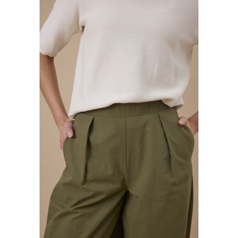 Disse vide bukser har et afslappet, rummeligt snit med høj talje og elastisk linning. Blød overflade, subtile læg foran og fuld længde fuldender den moderne stil.