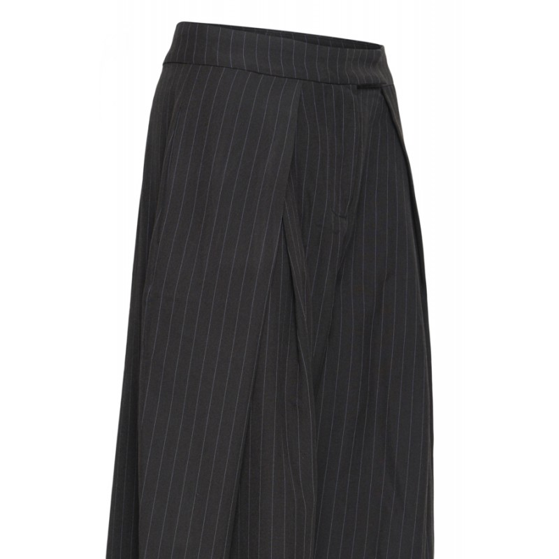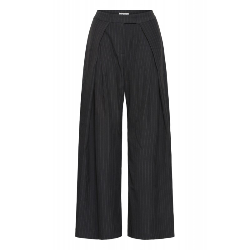 Flot buks med pinstripe og vidde fra ICHI. IHXJONA bukserne har fast linning med en skjult knaplukning. Bukserne har vidde i benene og en flot læg effekt ved linningen, som gør, at de falder flot.
