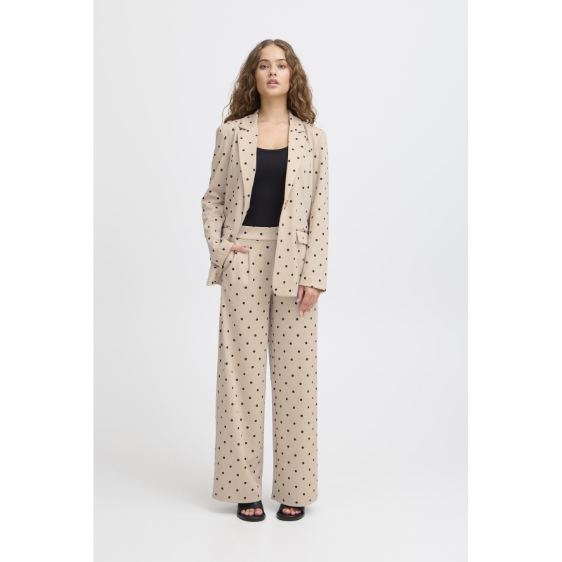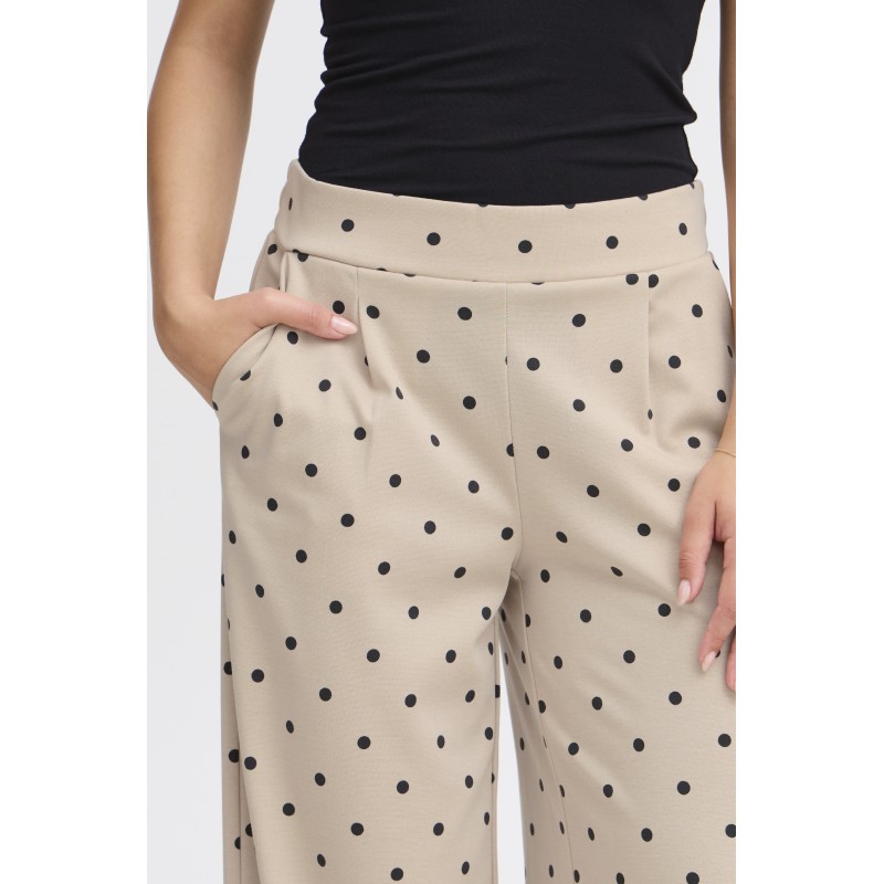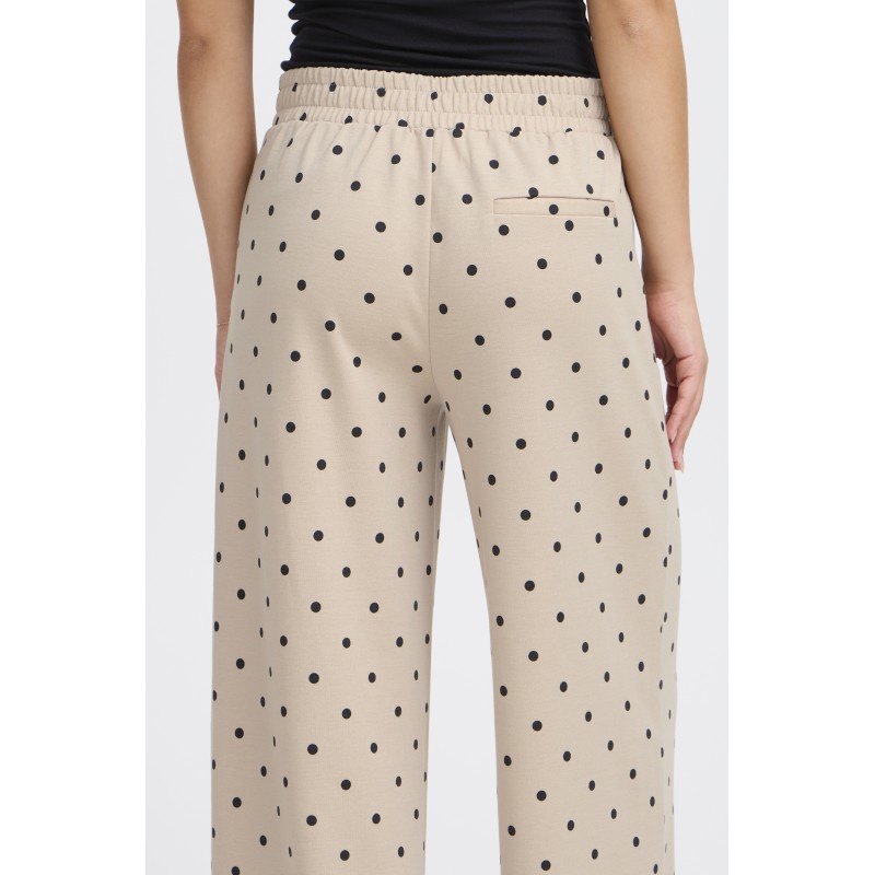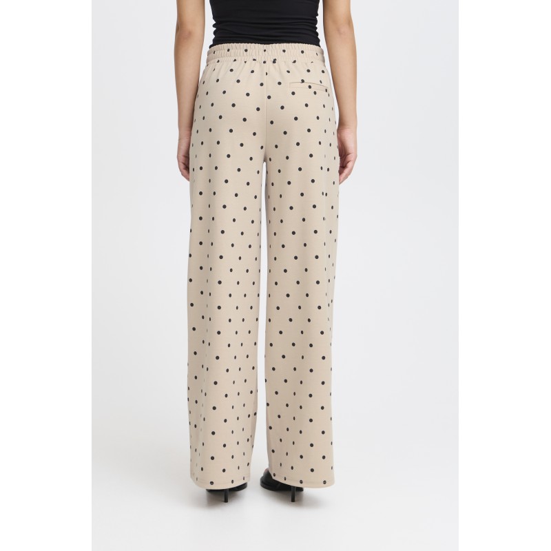 ICHI IXKATE DOT WIDE LONG PANT - Sandfarvede bukser med sorte prikker 20123588 fra Ichi