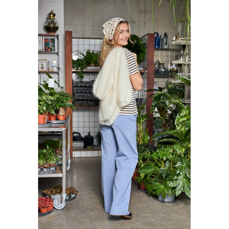 De lange, lige ben skaber en elegant silhuet med et smukt fald, der forlænger benene og giver et flot udtryk. Kvaliteten føles behagelig og har en let struktur, som gør bukserne ideelle både til kontoret og til mere festlige anledninger.