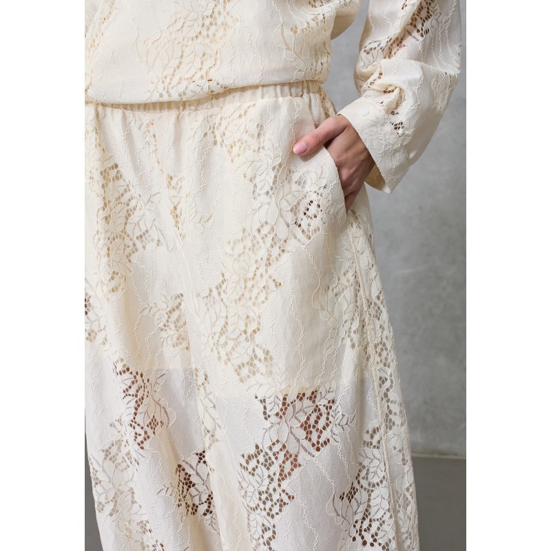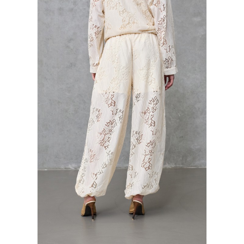 Elegante blonde bukser fra Love&Divine. Bukserne har elastik i livet og i benene. De har faste indershorts og lommer i siderne. En super sød buks der kan styles med bluse i samme serie for at fuldende looket.