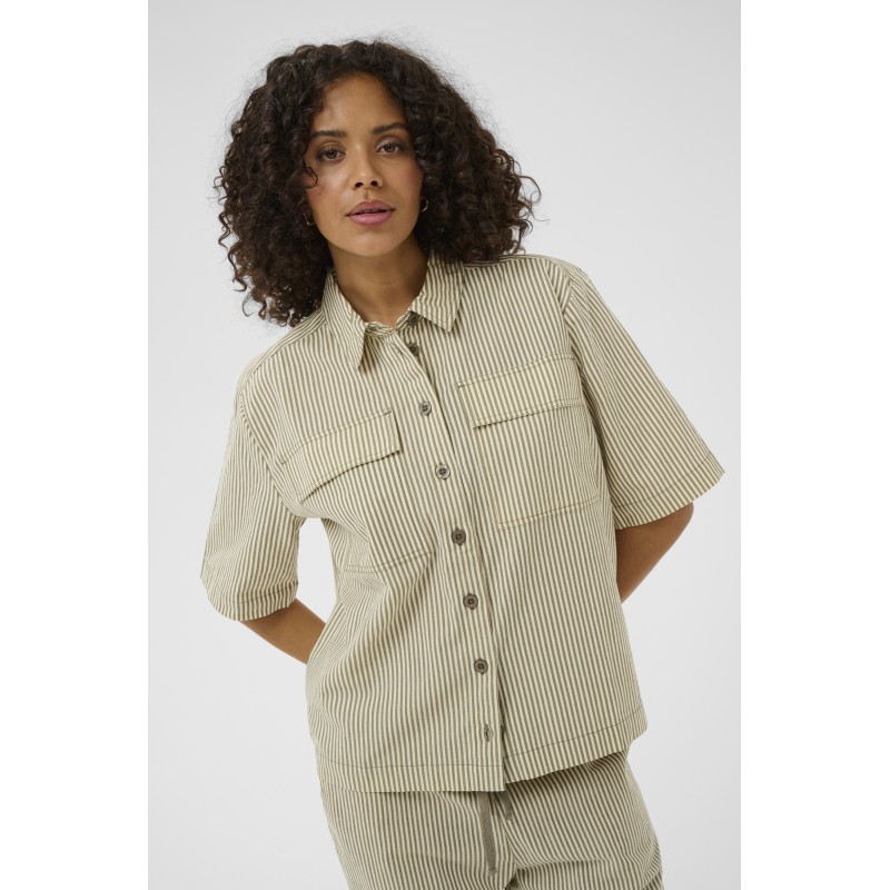 Kaffe KAnaya striped shirt - Sandfarvet stribet skjorte 10510106 Brindle/Turtledo