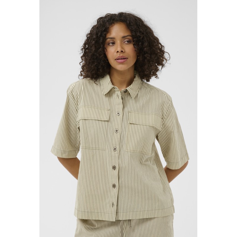 Kaffe KAnaya striped shirt - Sandfarvet stribet skjorte 10510106 Brindle/Turtledo fra Kaffe
