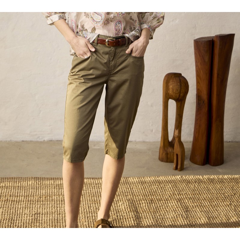 Grøn højtaljet capri buks med lige pasform og mellem længde, klassisk femlommersdesign, bæltestropper og let struktureret finish for en cool stil.