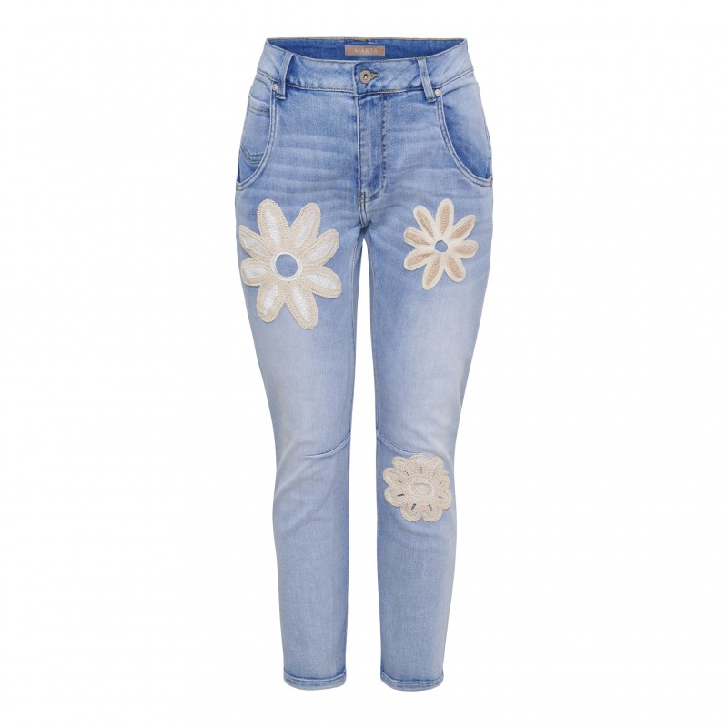 MdcIscah er et par super fede jeans med sandfarvede broderede blomster.