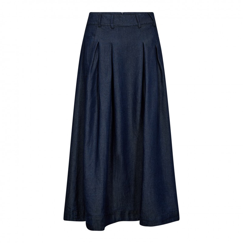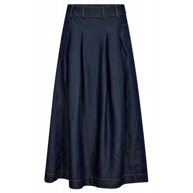 Co'couture AnyaCC Denim Pleat Skirt - Mørk denim nederdel 34181 Dark Denim fra Co'couture