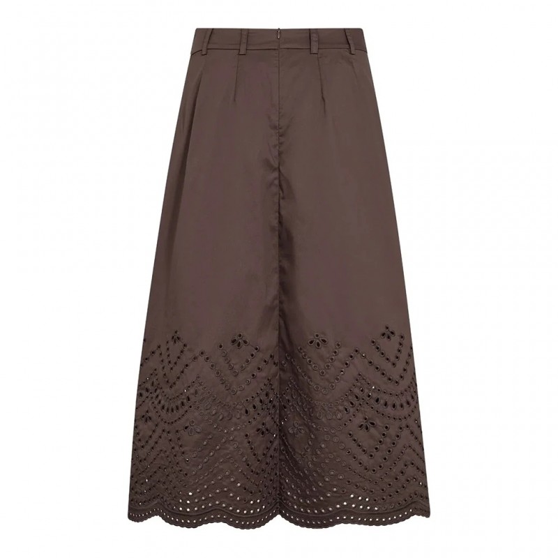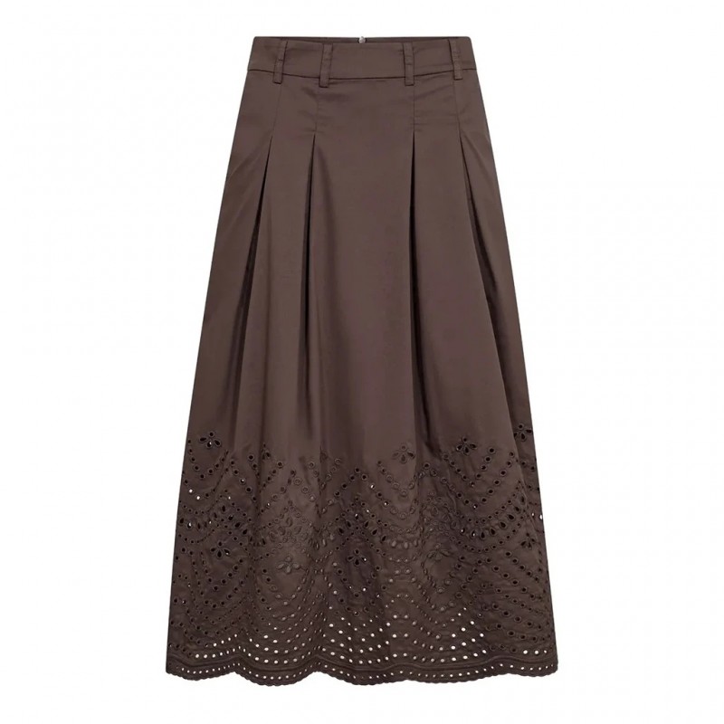 PoppyCC nederdel er en smuk mørkebrun nederdel med skallop-skårne kanter. Nederdelen er lavet en blanding af 70% bomuld, 27% polyamid og 3% elastane, hvilket sikrer både komfort og holdbarhed.