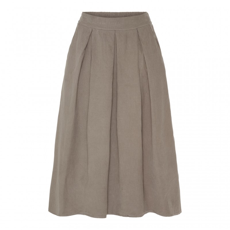 Smart Beige/grå nederdel i baby fløjl. Ciela nederdelen har elastik i livet, læg foran og side lommer.