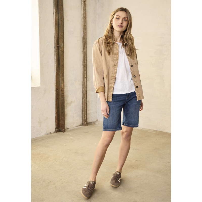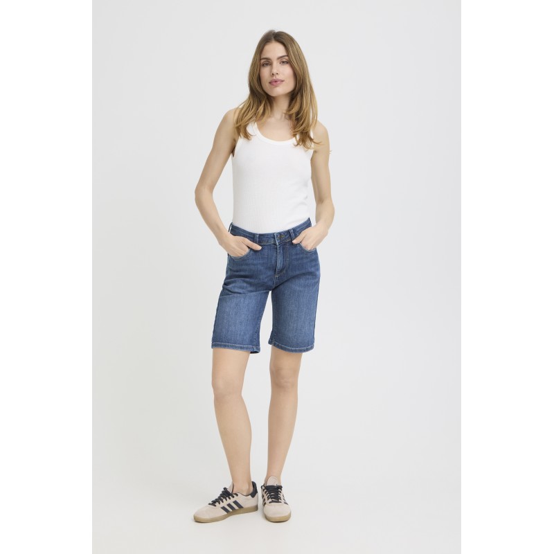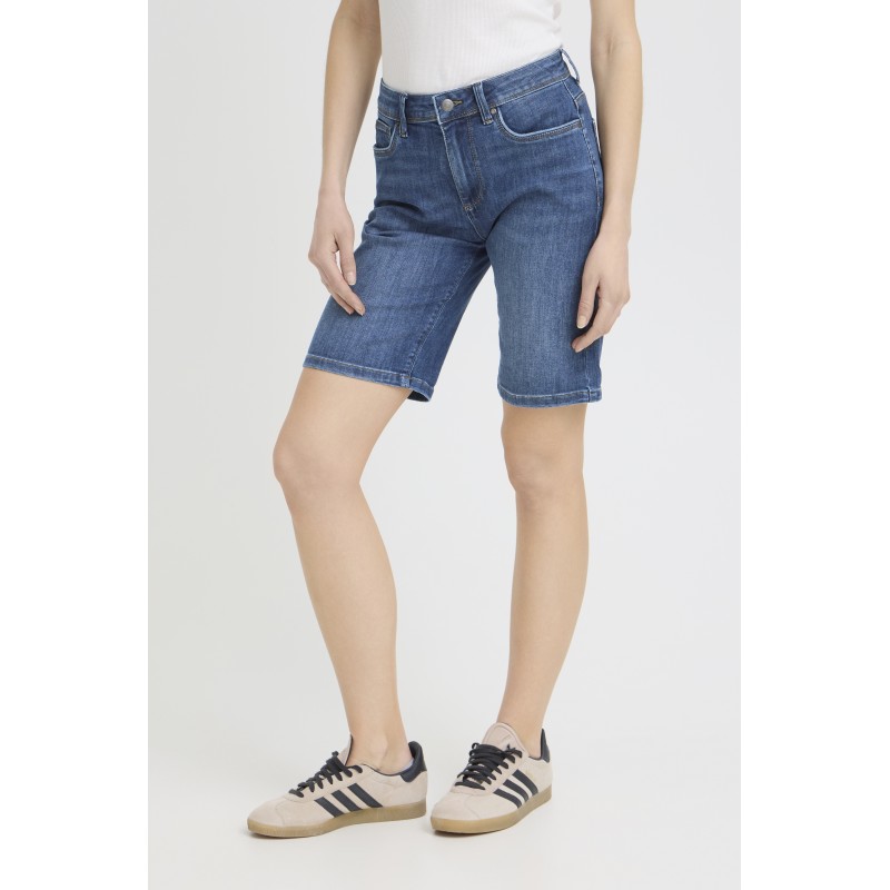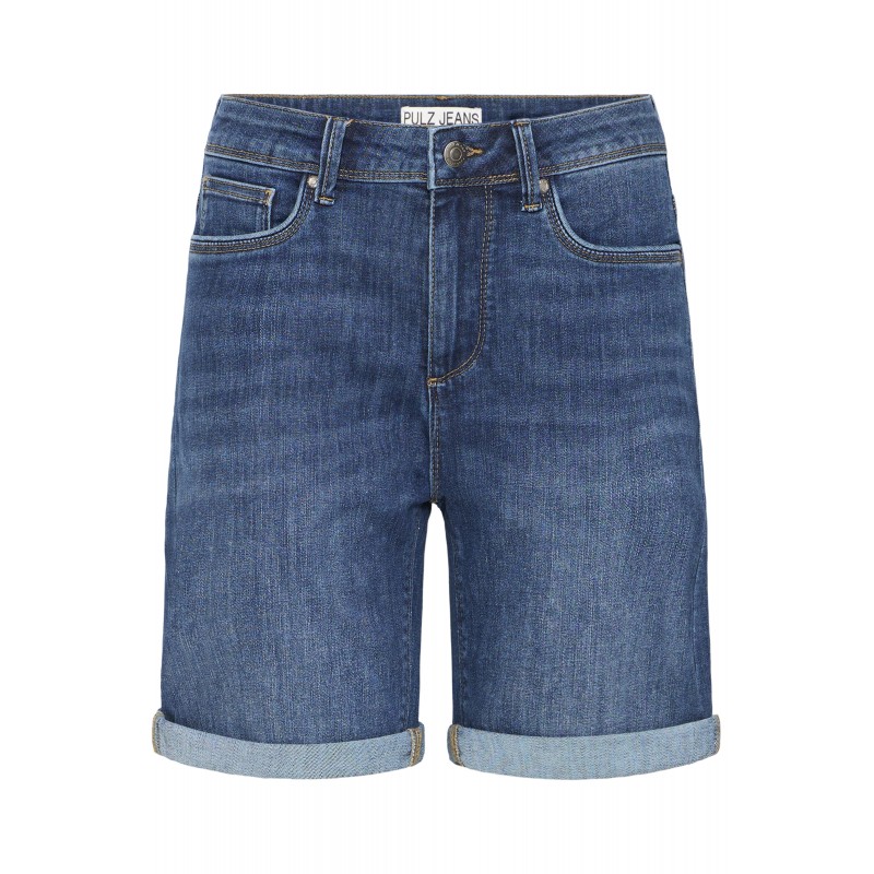 Klassiske denim shorts med lige pasform, fem lommer design og høj talje med knap og lynlås. PZKAYLA shortsen går til lige over knæet og kan enten have oprullede benkanter eller lade dem være nede.